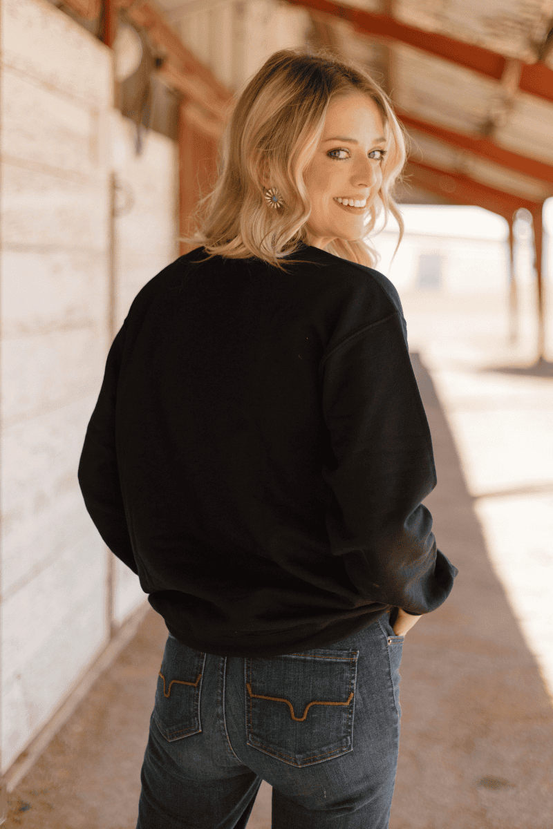 Saddle up for the holidays with this one-of-a-kind Santa's Cattle Drive Pullover. This charming black pullover features a playful twist on a classic—Santa's sleigh pulled by sturdy steers instead of traditional reindeer. Perfect for ranch lovers and holiday enthusiasts who appreciate Western flair, it's a conversation starter that celebrates the spirit of the season with authentic cowboy charm. Cozy, comfortable, and undeniably unique, this pullover lets you showcase your love for cattle country while spreading festive cheer.