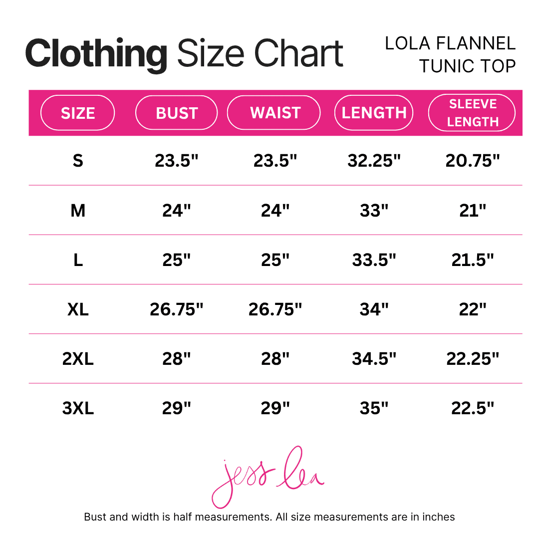 The Lola Flannel Tunic Top in Brown is the perfect choice for those cool fall days. Made from cozy flannel material, this top provides both warmth and style. With its relaxed fit and comfortable feel, you'll want to wear it all season long.